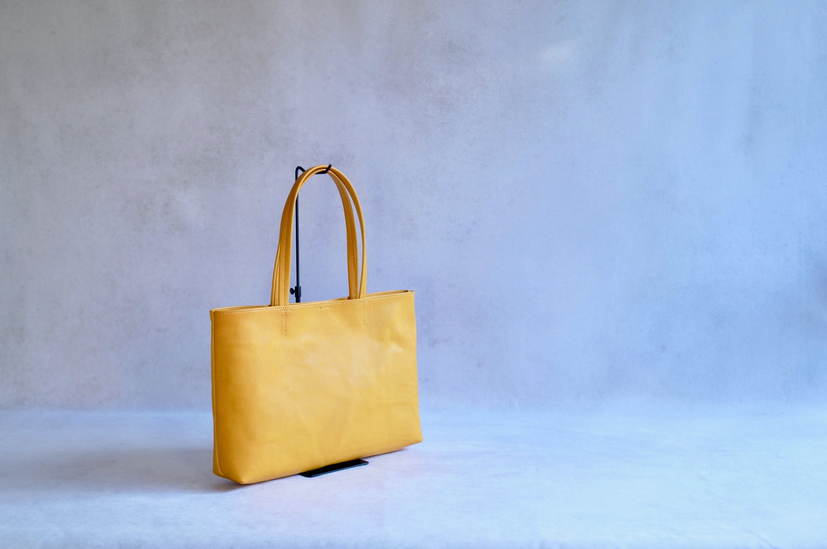 植物のタンニンで鞣し牛脚油を加え染料で手染めするというイタリア・トスカーナ地方の伝統製法で作られたバケッタレザー。 厳しい基準で浄化された排水など環境と人に配慮された工場で手間と時間をかけ丁寧に作られています。 独特の発色の美しさ、ムラ感が奥行きを感じます。しっとりと手に吸い付く手触り、繊維の密度が高く革ボコリの出にくいところもとても魅力的です。色合いや艶の変化の様から「化ける革」ともいわれています。