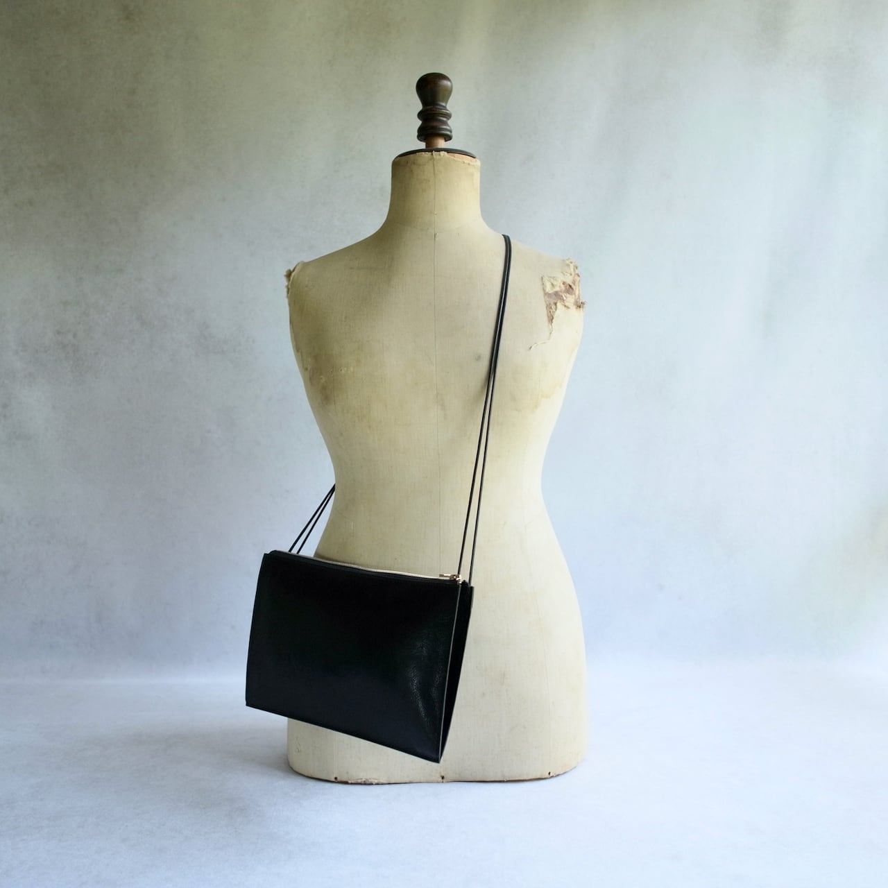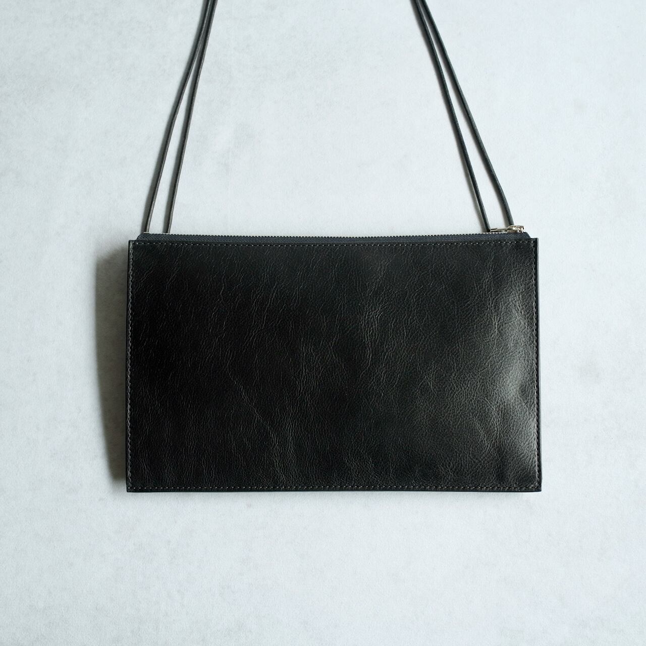ナナメ掛けした上からジャケットやコートを着て使用していただけるようにストラップを細くしています。