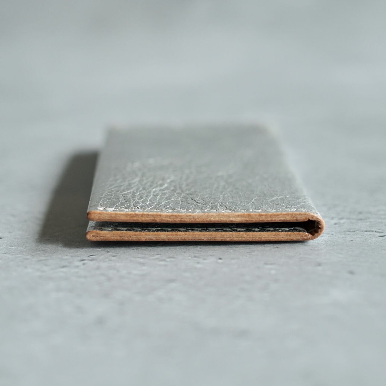 ・タンニン鞣しのベビーバッファロー革に銀箔貼り