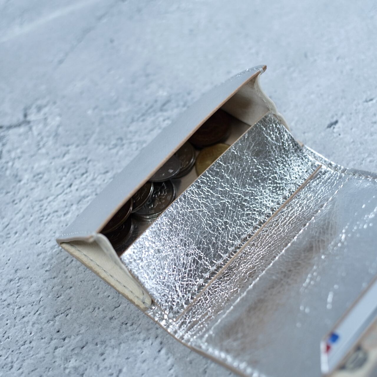 ・タンニン鞣しのベビーバッファロー革に銀箔貼り