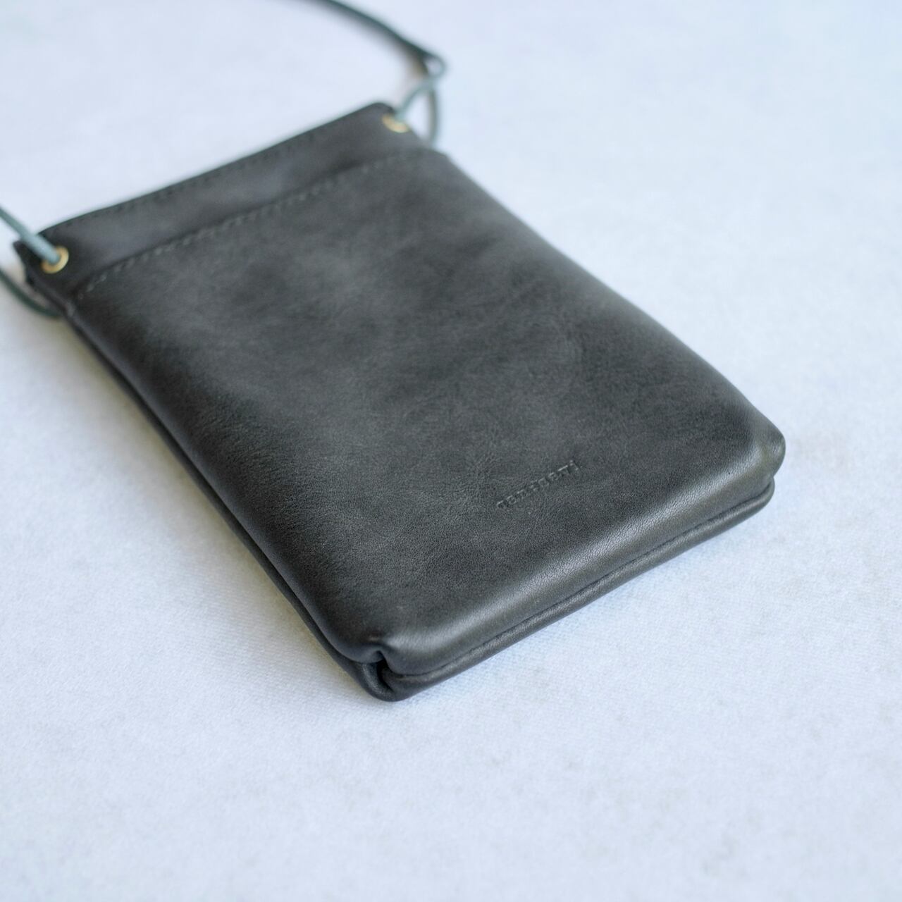 ナナメ掛けした上からジャケットやコートを着て使用していただけるようにストラップを細くしています。