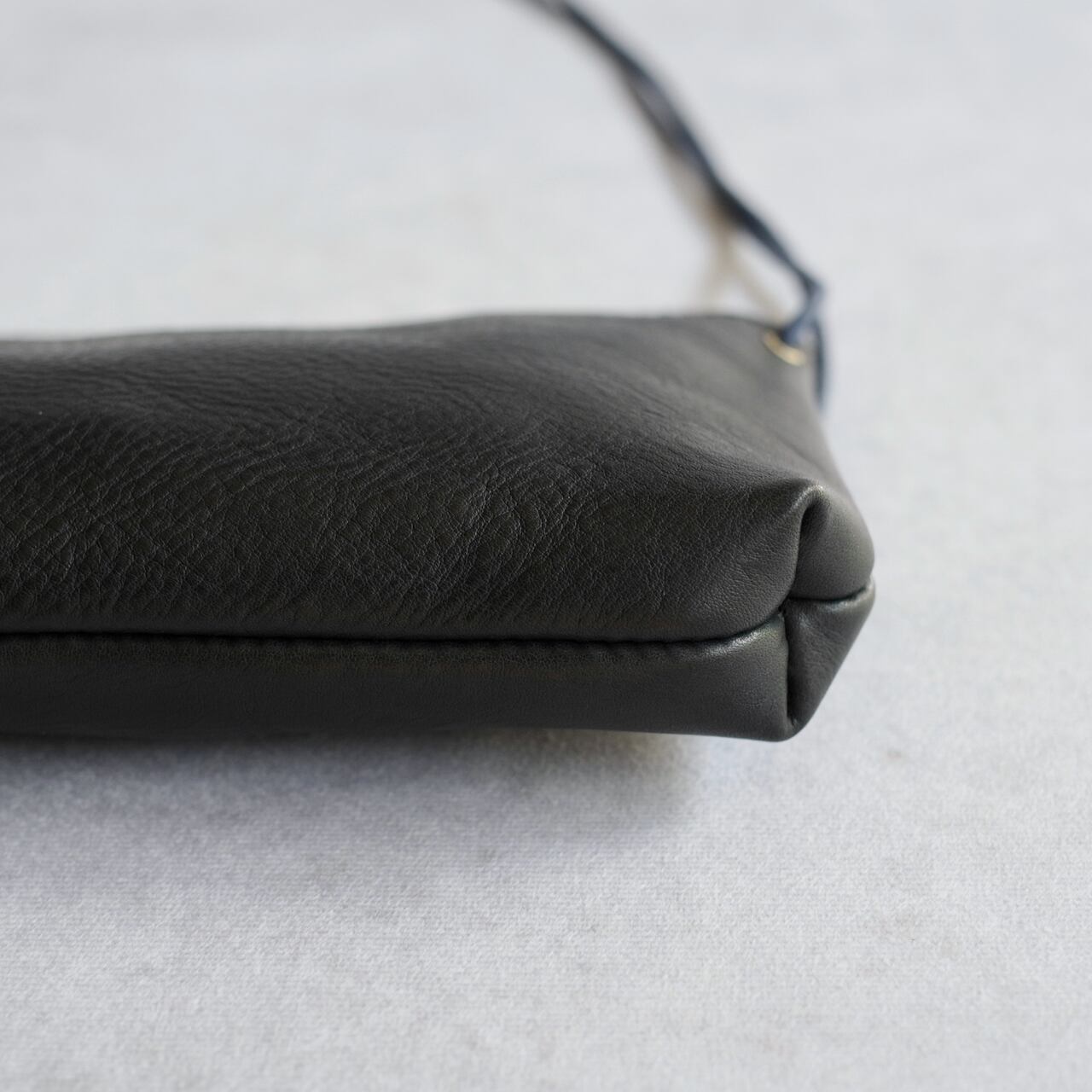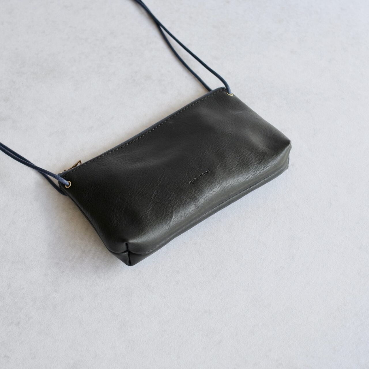 ナナメ掛けした上からジャケットやコートを着て使用していただけるようにストラップを細くしています。